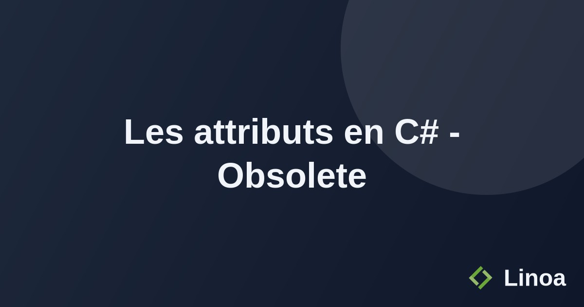 De ce premier article de cette série sur les attributs en C# nous explorerons l'utilisation de `ObsoleteAttribute`. Cet attribut est utilisé pour signifier au compilateur qu'une classe, une struct, une méthode, un enum est considéré comme obsolète et indique ainsi à l'utilisateur qu'il doit modifier son code appelant.