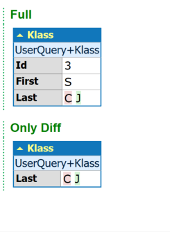 Util.Dif(element.f, element.s, hideMatchingMembers: true).Dump("Only Diff");