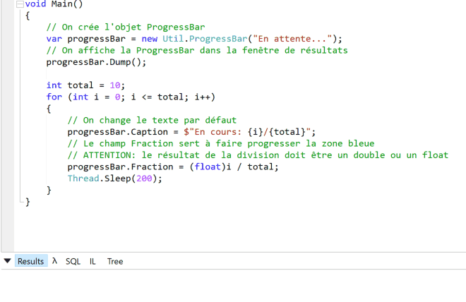 Si comme moi vous avez des scripts Linqpad qui ont un temps de traitement un peu long, il est toujours bon d'afficher une petite barre de progression.